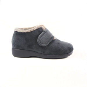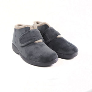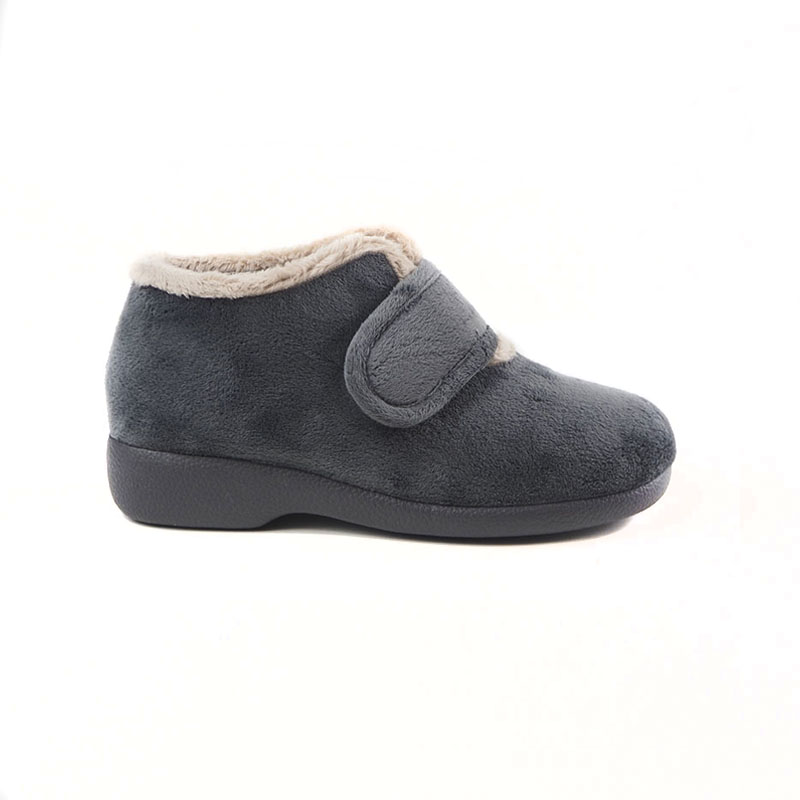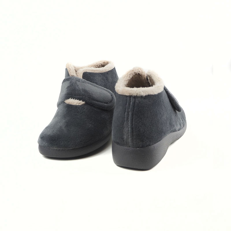 Zapatillas de casa para mujer Garzon 3895.247 en color gris. bota fabricada en suapel, un material blando y muy suave que se adapta muy bien a cualquier tipo de pie. Al ser bota cuenta con la ventaja que cubre parte del tobillo para las más frioleras, además el velcro hace que el pie vaya sujeto en todo momento. Tiene una horma ancha y el piso es grueso y de goma, adecuado incluso para exteriores como terrazas o jardines. Fabricadas en España.